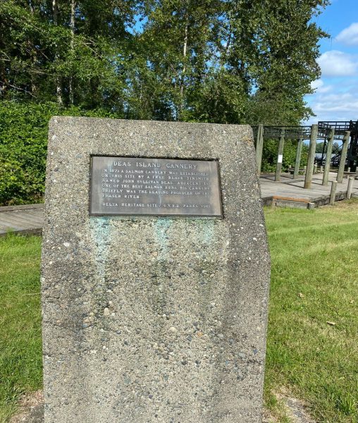 She took special notice of these plaques describing John Deas, after whom the island was named. John Deas, a cannery owner in the late 1800s is featured in our current exhibition The Label Unwrapped. You can read more about the history of Deas in this blog from last fall.