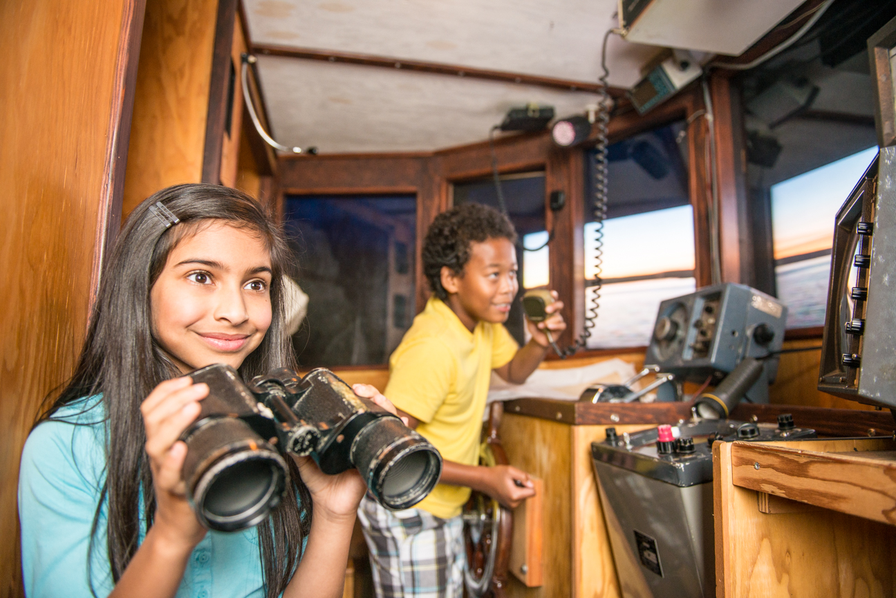 - Visitez la timonerie et devenez le capitaine d’un bateau de pêche qui navigue dans le port de Steveston. Pouvez-vous trouver un pêcheur à l’intérieur du bateau?