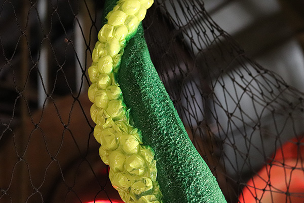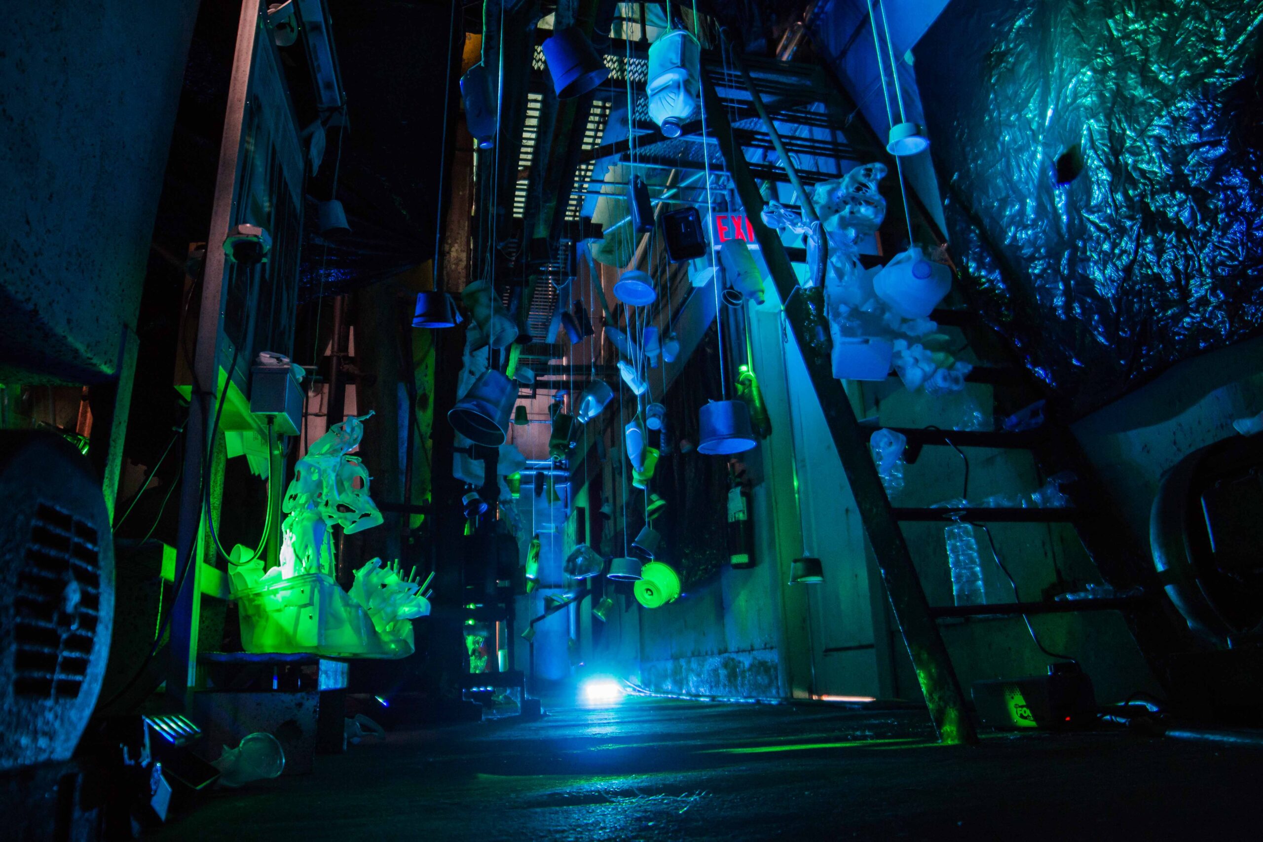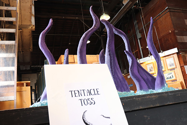 A big thank you to the hard-working volunteers and Cannery Crew who helped to bring the Haunted Sea into the ‘after’-life at the Cannery last weekend. Our annual Halloween event took place on October 27 & 28, as we revealed what lurks in the mysterious fathoms below! The entire Herring Reduction Plant side of the Cannery had been closed for a week leading up to the event, and when the gates finally creaked open on Saturday, we found the space had been taken over by flowing seaweed, coral reefs, giant tentacles, nets, and jellyfish, all created from over 5,000 feet of disposed plastics and styrofoam. The materials had been collected from staff and volunteers, and were artfully transformed by our talented Event Coordinator and mastermind of this undersea wasteland, Trish Falkstone. Trish’s passion to keep our oceans and rivers waste-free were embodied in her imaginative (and spooky!) recreation of what the ocean depths may look like if we continue to dispose of otherwise re-usable products.