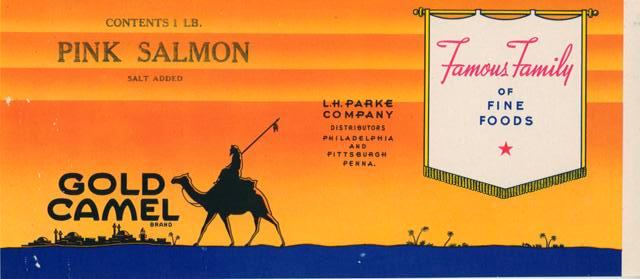 Stephanie’s pick: “This Gold Camel Brand label is my favorite for so many reasons! One, whoever thought to connect a desert – a place that invokes dry, water-less and barren spaces would inspire consumers to buy packed fish? I love it because it is so silly, endearing, and so atypical. Deserts are also my favorite and I’ve spent a fair amount of time trudging through the sands; this label brings me back to those happy memories, sunshine and the vibrant sunny days. I don’t know that I would want to eat salmon when looking at this label, but it would definitely stand out on a packed shelf!” (G2001.003.002)